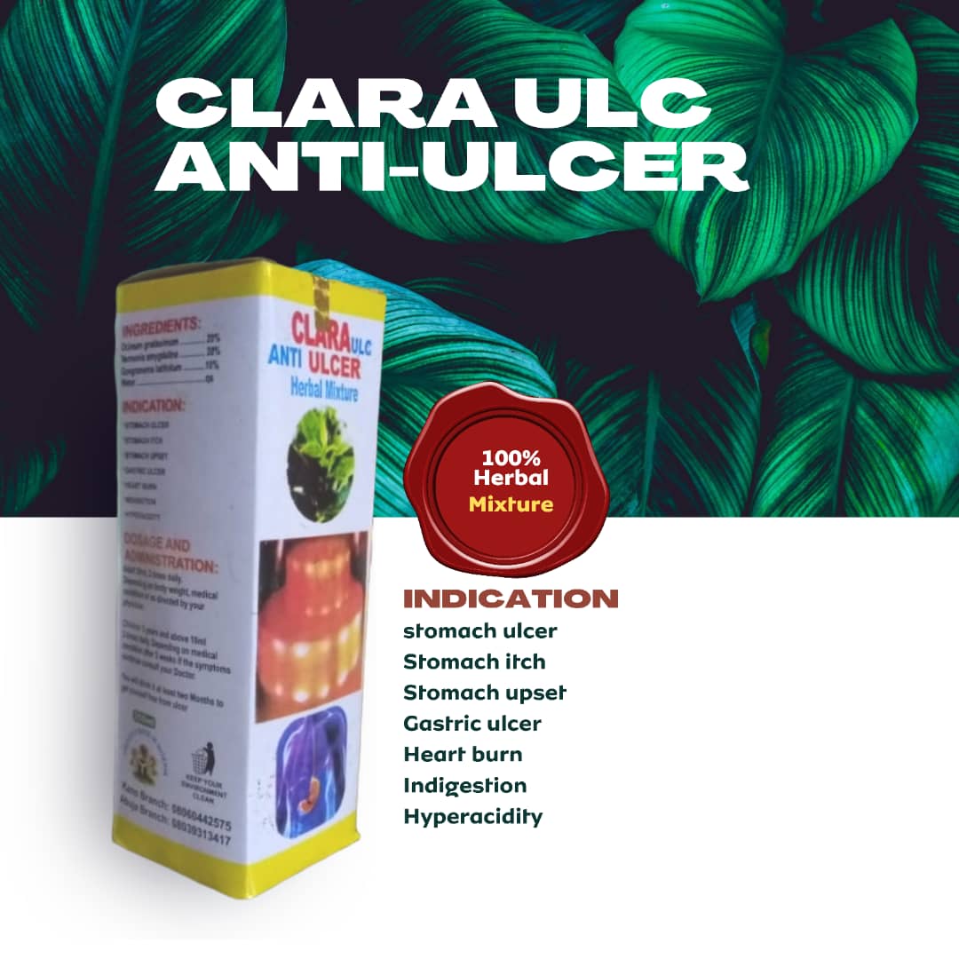 Clara Ulc Anti-Ulcer Herbal Mixture is specially formulated for stubborn stomach Ulcer, stomach Itching, stomach upset, gastric Ulcer, heart burn, indigestion issues and hyperactivity