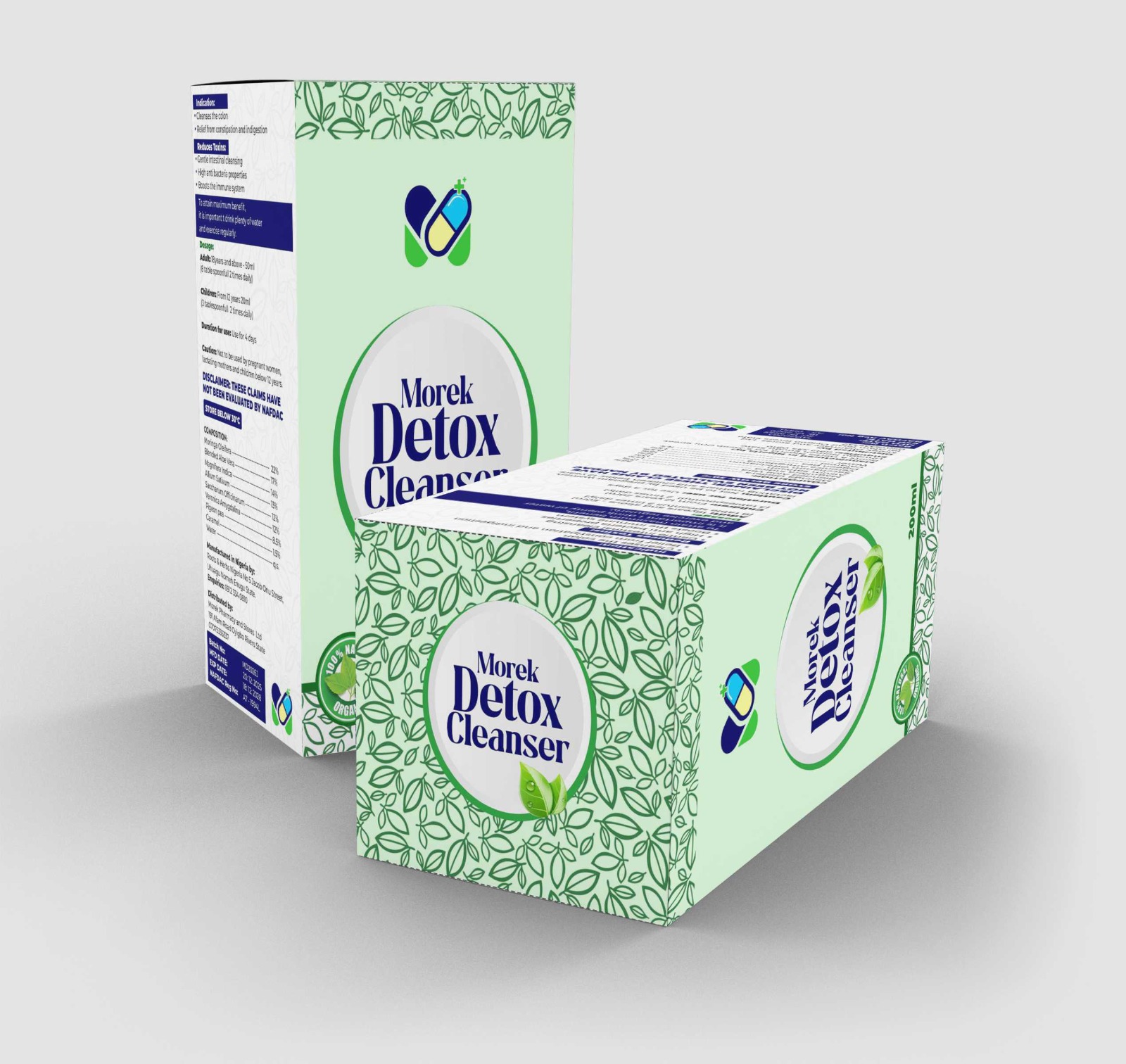 Morek Detox Cleanser is a natural herbal mixture for effective colon cleansing, constipation relief, and immune boost. With Moringa, Aloe Vera, and anti-bacterial properties. Dosage: Adults 50ml 2x daily. Use for 4 days.